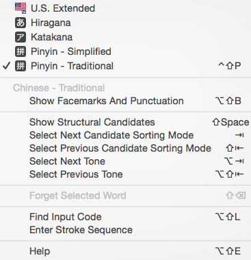Note: "Trackpad Handwriting" also appears here if you have a multi-touch trackpad. See: Using Trackpad Handwriting with Simplified or Traditional Chinese