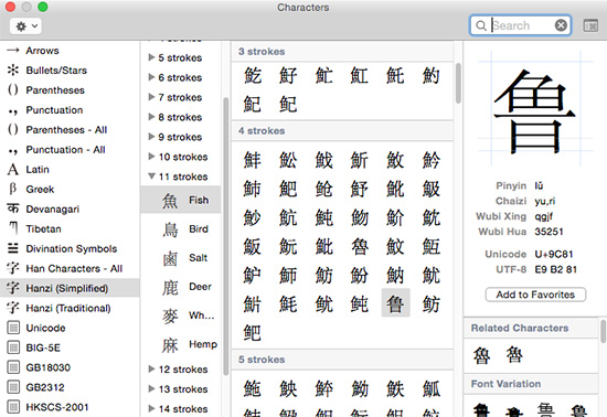 Chinese in OS X 10.10 Yosemite
