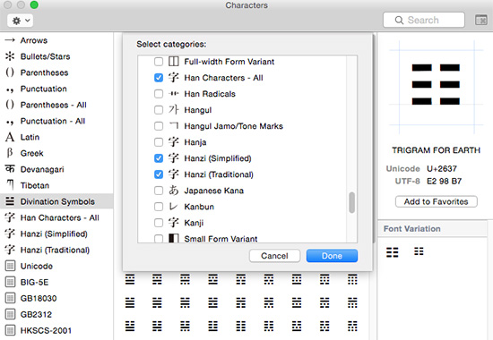 - Hanzi (Traditional) displays the Big-5 character set by radical-stroke.