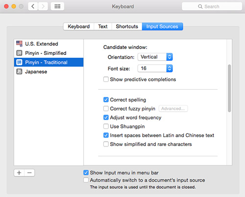 Note: "Trackpad Handwriting" also appears here if you have a multi-touch trackpad. See: Using Trackpad Handwriting with Simplified or Traditional Chinese