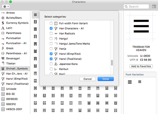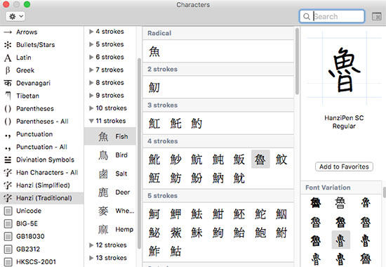 - Hanzi (Traditional) displays the Big-5 character set by radical-stroke.